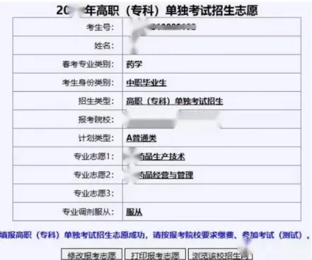 - 操作:可进行 “修改报考志愿”“打印报考志愿”“浏览该校招生网”。
