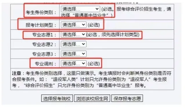 - 类型选择(二者不可兼报,每名考生仅可选 1 所院校):