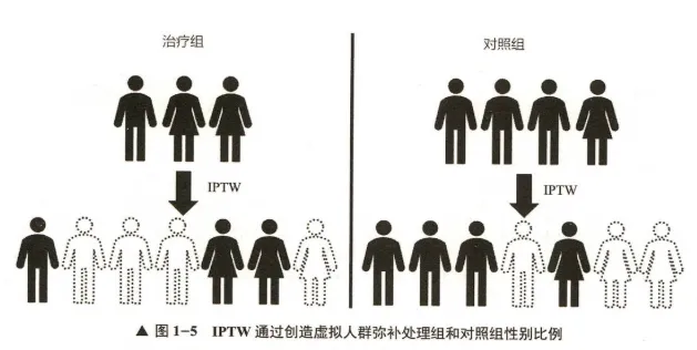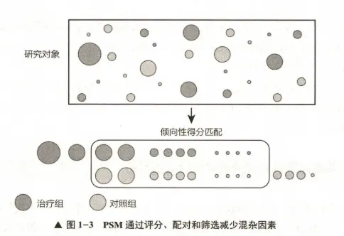倾向性评分匹配(PSM):通过一定的统计学方法对试验组和对照组进行筛选,使筛选出来的对象在某些重要临床特征方面具有可比性。PSM的原理是以分组变量为因变量,以可能影响结果的混杂因素为协变量构建模型,求得每个观测的多个协变量的倾向性非暴露分,再按照就近原则进行匹配。通过PSM可以使得匹配后两组对象基线协变量均衡可比,从而控制混杂效应对处理效应估计的偏移。逆概率加权(IPTW):通过加权改变研究对象中具有不同协变量特征的亚组人群的比例,使得不同的亚组人群具有接近的暴露方式的构成比。可以理解为 通过IPTW的方法,产生一个虚拟的人群,在这个人群中,暴露对结局的效应与原研究人群相同,但这个虚拟的人群总不存在时依性混杂因素。【笔者:这段话没看懂,看看图假装懂了;后面如果能坚持学到第九章会继续尝试解读……】IPTW不能增加这些虚拟人群的基线资料,一般用于校正生存分析的结果,需要与PSM联合应用。临床回顾性研究常规步骤:选题→文章架构→数据收集→统计分析→论文撰写及发表