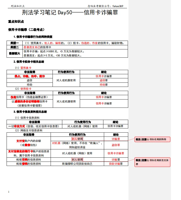 >刑法学习笔记Day50——信用卡诈骗罪