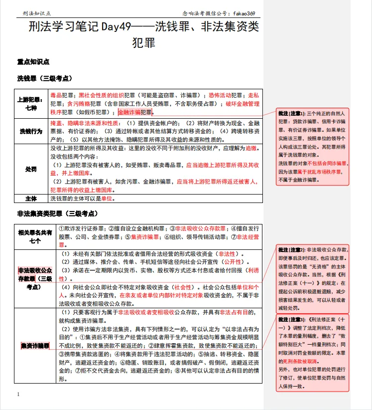 >刑法学习笔记Day49——洗钱罪、非法集资类犯罪