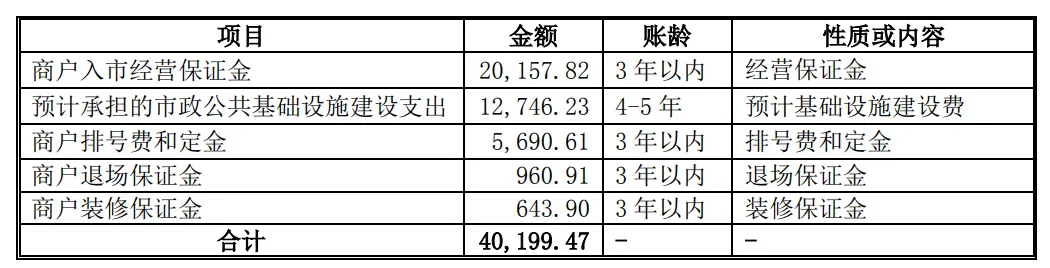 ③公司的其他应付款主要是收取商户的排号费、定金和入市经营保证金,以及因北门店升级改造土地性质改变而预计承担的市政公共基础设施建设支出。报告期末其他应付款前五名明细如下: