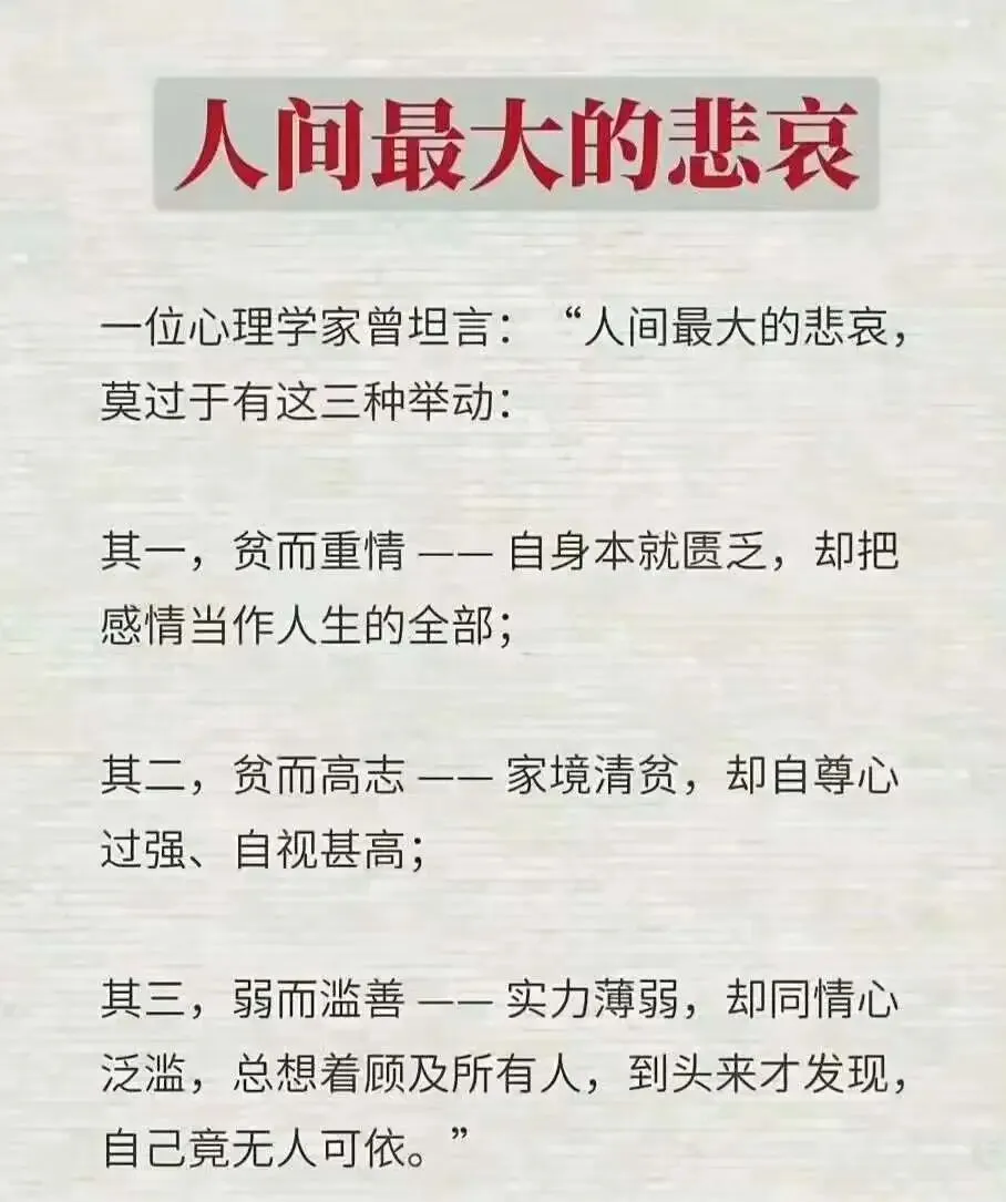 穷人或者穷过一次的人,才知道人心的凉薄,才能看明白社会的现实、身边人感情的善变、以及人心的叵测,这是露骨的现实也是最真实的社会。