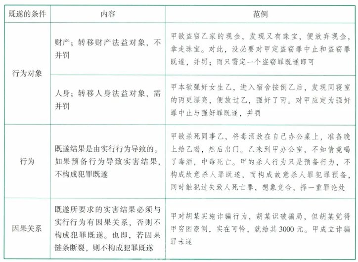 既遂所要求的实害结果必须与实行行为之间具有因果关系。若因果链条断裂,则不成立犯罪既遂。常见犯罪的行为结构要求如下: