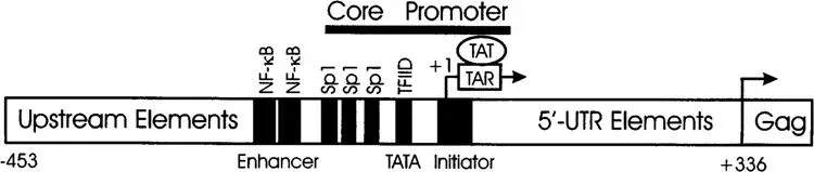 在整合发生后的早期阶段,HIV产生约短的多重剪接mRNA,这些转录本编码关键调控蛋白Tat、Rev与Nef。其中Tat通过结合于病毒基因组5' 端的TAR元件,可显著提高转录效率,它招募P-TEFb等细胞因子,促进RNA转录本的延伸;而Rev可促进未剪接和部分剪接的病毒RNA从细胞核转运至细胞质,这对病毒颗粒的形成至关重要。