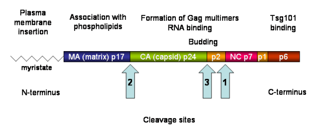HIV病毒出芽后的成熟过程依赖于病毒蛋白酶 (PR) 的激活和对Gag及Gag-Pol多聚蛋白的切割。