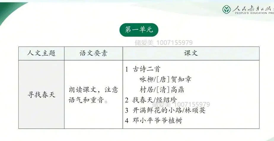 第一单元的人文主题是寻找春天语文要素的是朗读课文,注意语气和重音。语气与重音是朗读中传递语义沟通情感的重要能力,引导学生掌握这两项技能,不仅能够帮助他们更准确的把握语句的重点,理解文本内容,也能支持他们更深入的体会文字蕴涵的感情。关于注意语气,学生在一年级以及二年级上册已经有过多次的练习。本单元正在巩固与扩展,既要引导学生依据不同的角色与语境,读出恰当的语气,也要在口语交际中进一步体会语气在真实交流中的作用,学习运用得体的语气来表达。