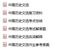 今天分享的资料是「0387-中国历史文选」电子版+学习笔记+知识点总结+期末考试重点+复习资料+习题集及答案+名词解释+历年真题试卷及答案+题库及答案+复习重点+思考题及参考答案+公式总结+考试重点基础题+知识总结+高清PDF可打印+免费分享!