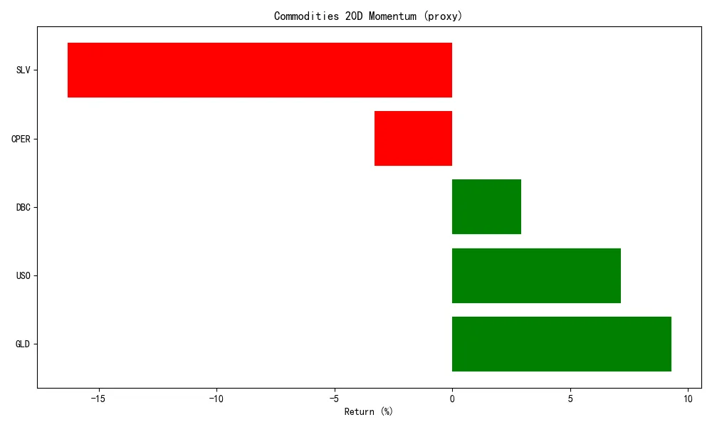 - 用价格/趋势做基础板块划分;关注黄金与原油的相对强弱。