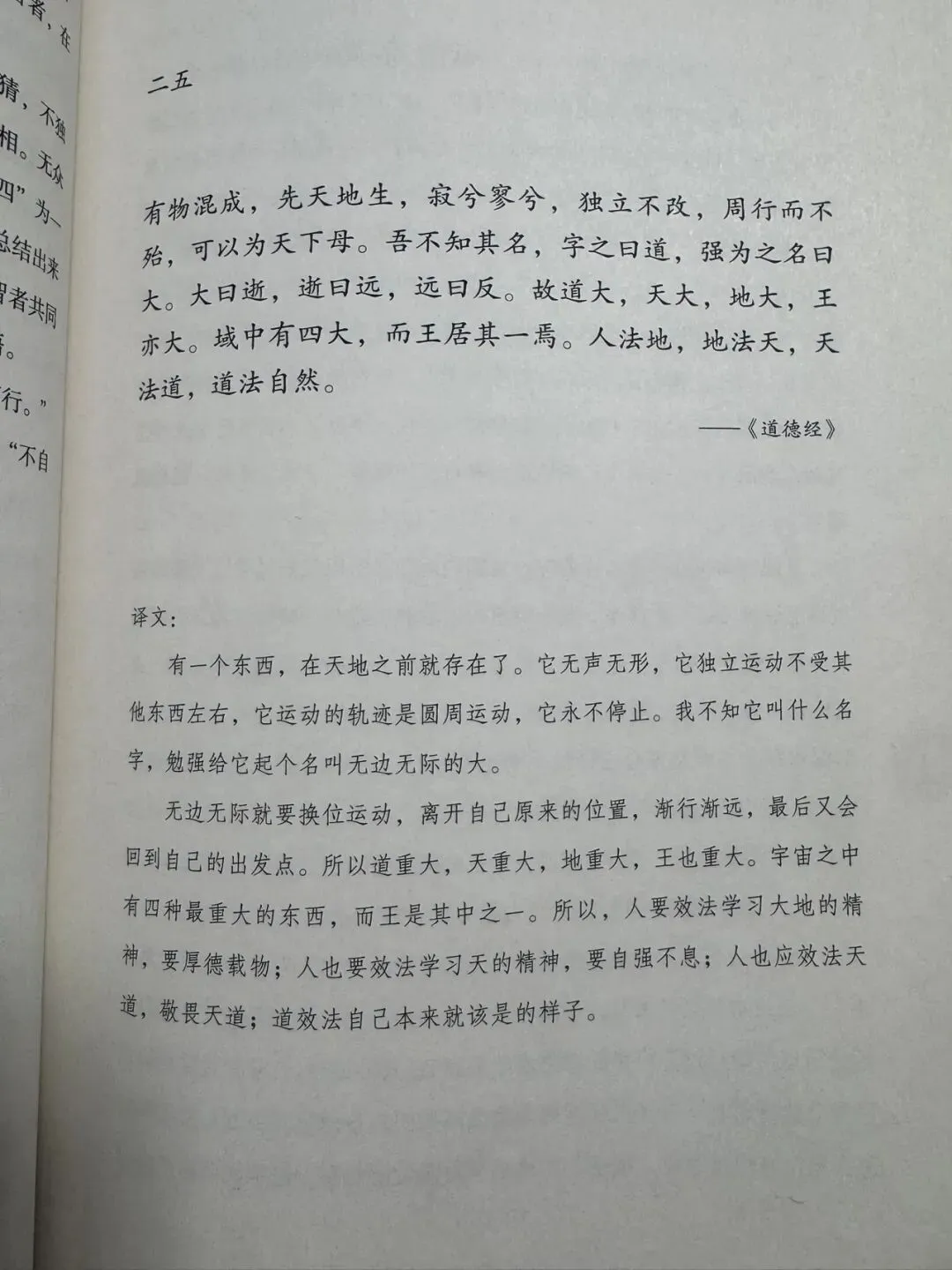 1️⃣有物混成,先天地生,寂兮寥兮,独立不改,周行不殆,可以为天下母,吾不知其名,字之曰道,强为之名曰大。