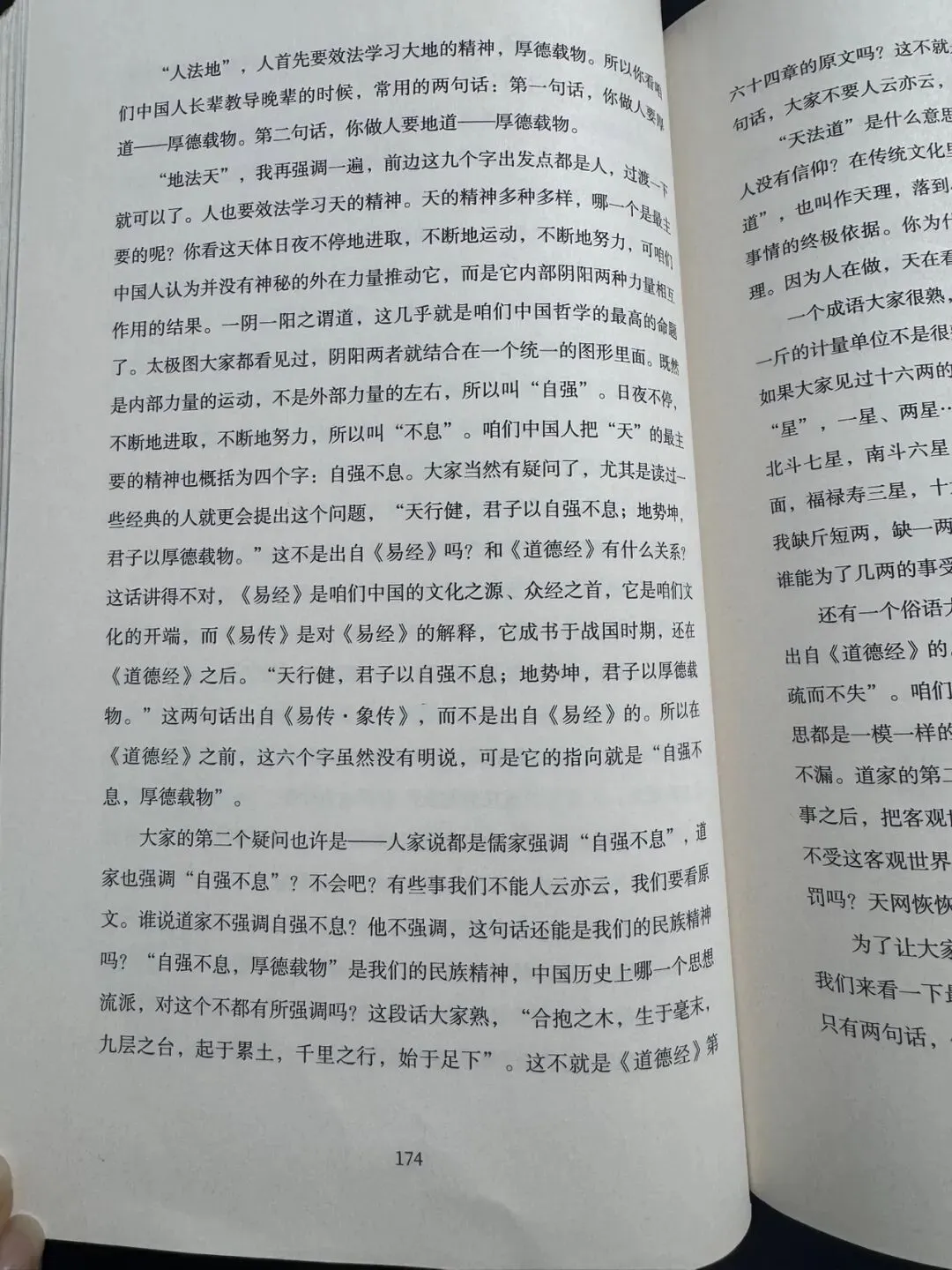 前面9个字出发点都是人,人要效法大地的精神,多少沉重的东西都压在这大地上,它都能够担当承载起来———厚德载物。它的担当与承载就是它对我们的最宽厚的品德。
