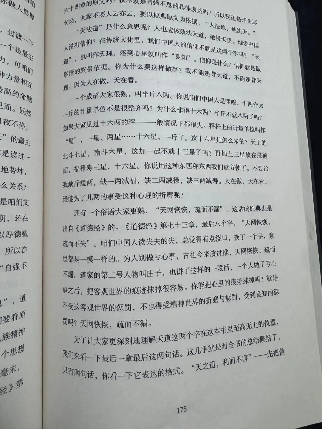 “天法道” 人也应该效法天道,敬畏天道 。中国人的信仰是天,人在做天在看。