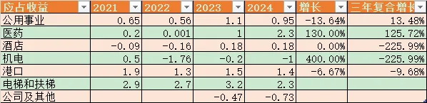 其中港口和电梯贡献的应占收益为3.7亿,但是不并表,所以没有经营现金流。