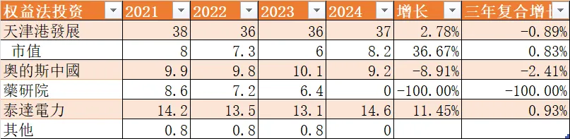 现金流有点异常,2024年为负的7亿,大幅低于利润。一个原因是利润的主要贡献是两个非并表公司,各个公司给公司带来的利润如下: