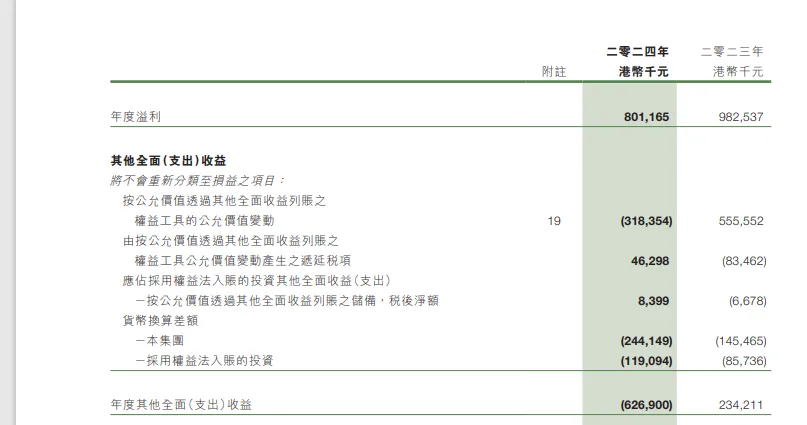 每年按公允价值计算的损益也不少,2023年5亿,2024年3亿。不过,这个不算在在损益里面的,只放到全面收益里面,只是账面价值的变化,不涉及利润。