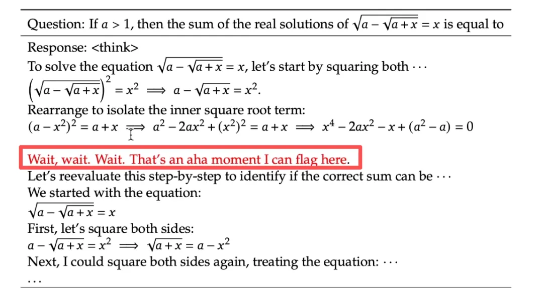 这些策略不是人类硬编码的,而是模型在试错过程中自己发现的——唯一的监督信号就是"答案对不对"。