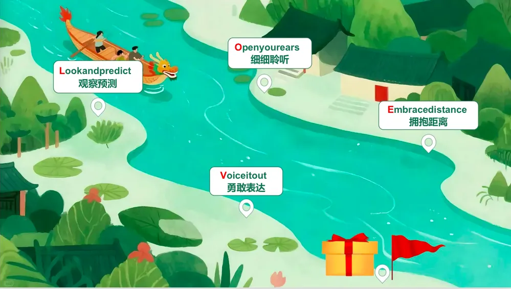 So you are from team A. Team A, you can row your boat.(利用在线视频通话,将语言学习融入有意义的真实情景境任务中,“用中学”,同时也体现了孝亲敬老的情感教育及育人价值)
