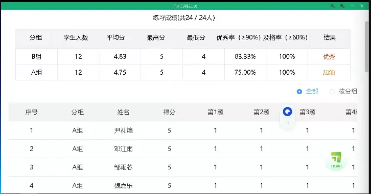 OK, wait a minute. Let's see our report. Oh, Team B, you did a good job today. You can get to the next station and Team A, come on, OK? And now let's see. The best one is from group B, Cao Xitong. Clap for her. Let's enjoy one of her sentence. OK, this one.Yes, her cold is gone. She is gardening. Hold on. Here is mom. Oh, you sound like a native speaker. Now and I can see, here is a low score. It’s from Wei Jiale. Who’s Wei Jiale? Hands up. It doesn’t matter. Let’s listen and improve it, OK? Now, listen. This one. Now stand up, please. When you read, read it clearly, OK? So can you read it again?Yes. Hi, mom. How are you doing? Much better. Sit down, please. (第三次借助智能平台完成跟读模拟及测评数据反馈, 及时表扬和查漏补缺)