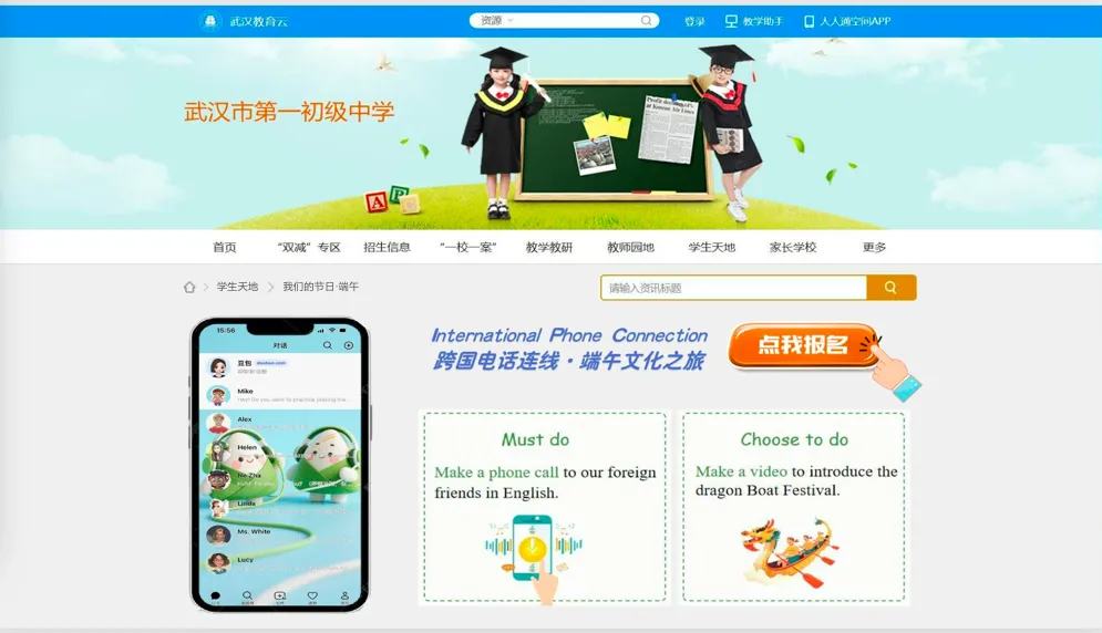 Oh, class is almost over. Your homework is to make a phone call or make a video to talk about the Dragon Boat Festival.
