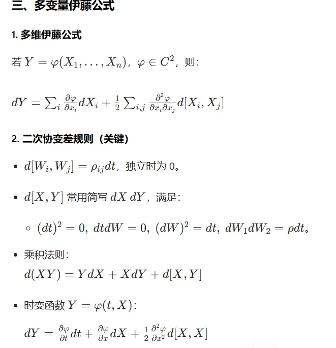 随机微积分(SDE、伊藤公式、多维伊藤)