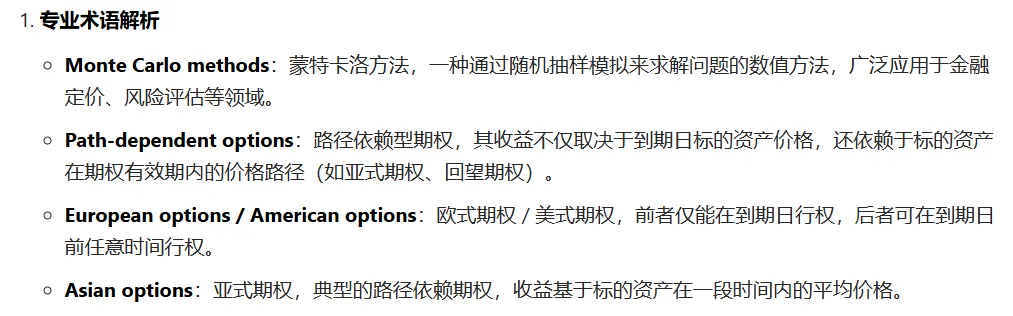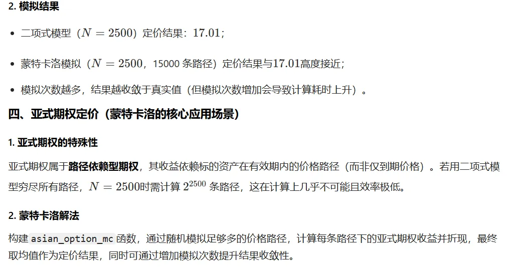 - 该方法的核心优势:解决路径依赖型衍生品(如亚式期权)这类无法穷尽路径的定价问题;