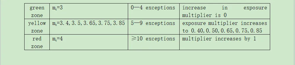 ②When backtesting VaR,the number of exceptions is determined for a 250-day testing period.Based on the number of exceptions,the bank´s exposure is categorized into one of three zones and VaR is scaled up by the appropriate multiplier(subject to a floor of mc=3):