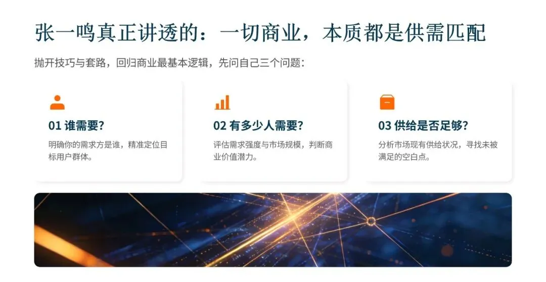 - 回归本质:它把所有商业和个人问题,都还原成“需求有多大”和“供给有多少”这两个最根本的变量。