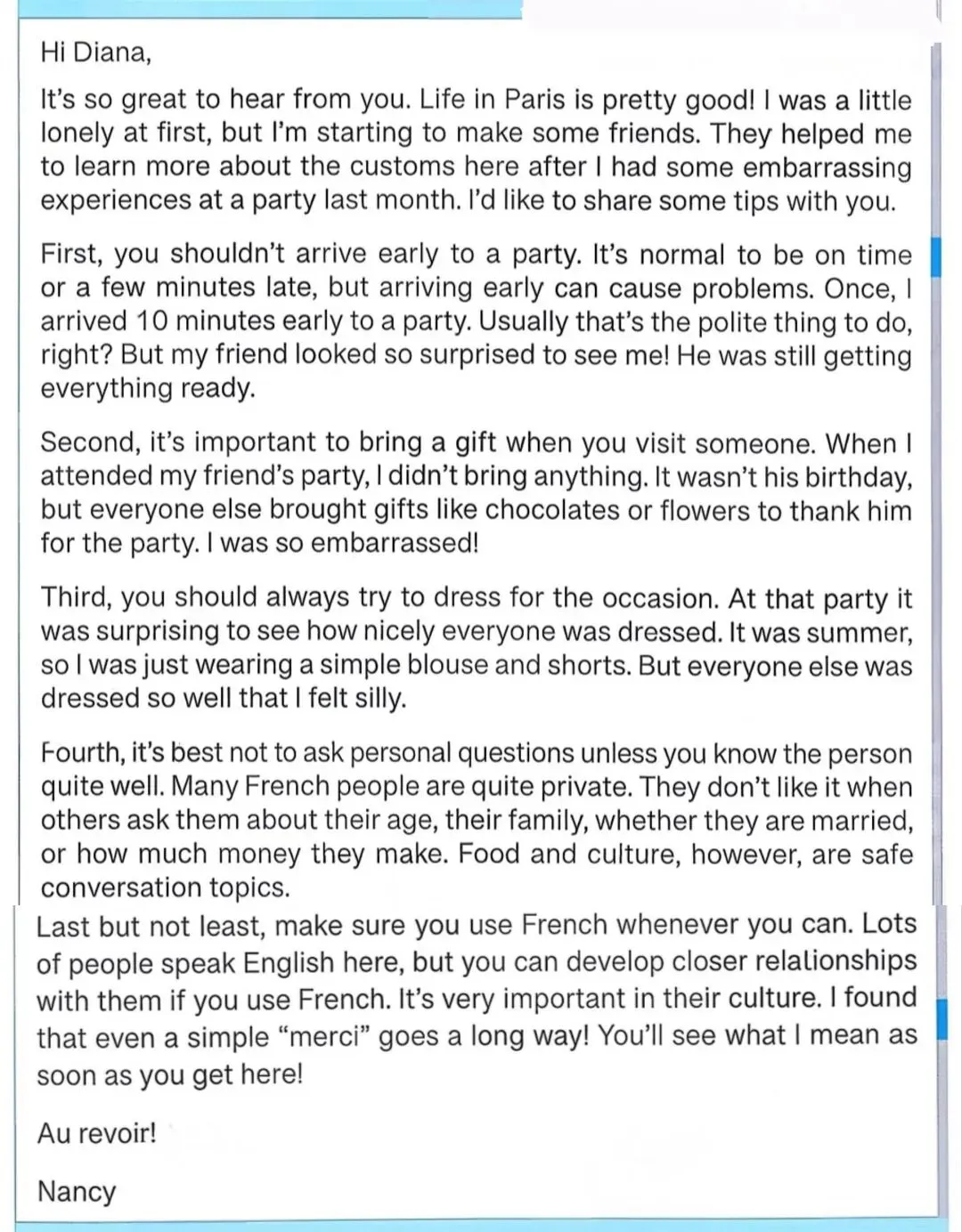 上个月我在一次聚会上经历了一些尴尬的事,之后他们帮助我更多地了解了这里的习俗。