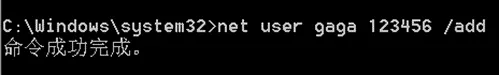 - 输入 net user gaga 123456 /add, 添加gaga用户