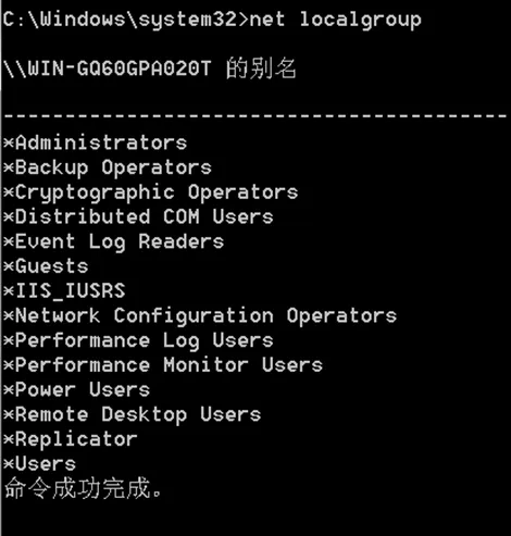 - 输入 net localgroup, 查看本地用户组。
