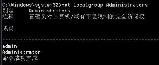 - 输入 net localgroup Administrators, 查看Administrators 组里有哪些用户