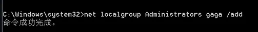 - 输入net localgroup Administrators gaga /add,将gaga用户添加到Administrators 组里