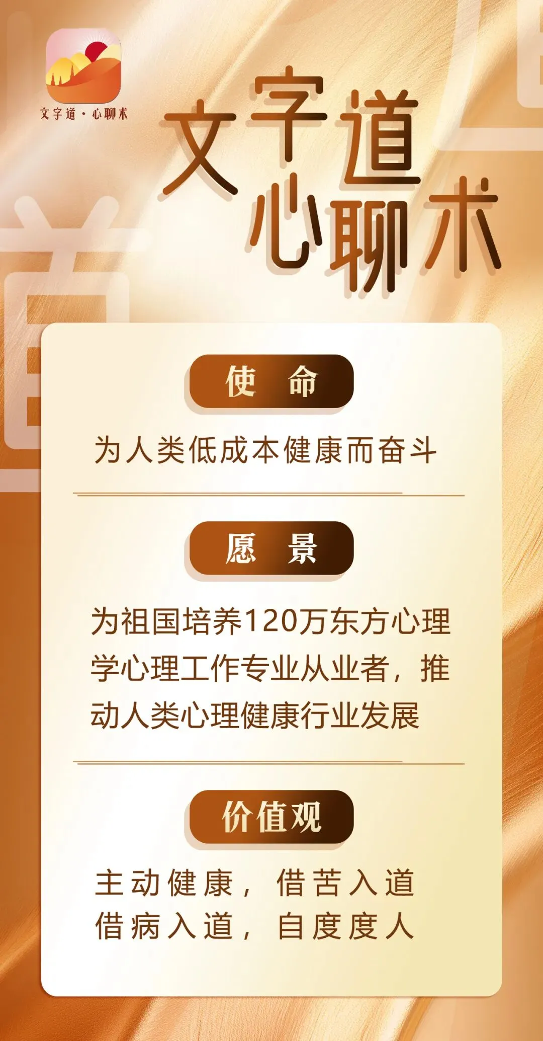愿景:为祖国培养120万东方心理学心理工作专业从业者,推动人类心理健康行业发展!