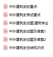 今天分享的资料是「0416-中外建筑史」电子版+学习笔记+知识点总结+期末考试重点+复习资料+习题集及答案+名词解释+历年真题试卷及答案+题库及答案+复习重点+思考题及参考答案+公式总结+考试重点基础题+知识总结+高清PDF可打印+免费分享!