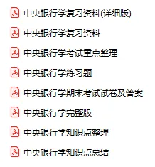 今天分享的资料是「0420-中央银行学」电子版+学习笔记+知识点总结+期末考试重点+复习资料+习题集及答案+名词解释+历年真题试卷及答案+题库及答案+复习重点+思考题及参考答案+公式总结+考试重点基础题+知识总结+高清PDF可打印+免费分享!
