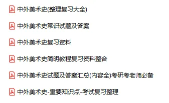 今天分享的资料是「0419-中外美术史」电子版+学习笔记+知识点总结+期末考试重点+复习资料+习题集及答案+名词解释+历年真题试卷及答案+题库及答案+复习重点+思考题及参考答案+公式总结+考试重点基础题+知识总结+高清PDF可打印+免费分享!