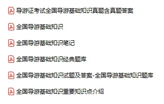 今天分享的资料是「0488-全国导游基础知识」电子版+学习笔记+知识点总结+期末考试重点+复习资料+习题集及答案+名词解释+历年真题试卷及答案+题库及答案+复习重点+思考题及参考答案+公式总结+考试重点基础题+知识总结+高清PDF可打印+免费分享!
