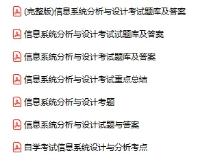今天分享的资料是「0477-信息系统分析与设计」电子版+学习笔记+知识点总结+期末考试重点+复习资料+习题集及答案+名词解释+历年真题试卷及答案+题库及答案+复习重点+思考题及参考答案+公式总结+考试重点基础题+知识总结+高清PDF可打印+免费分享!
