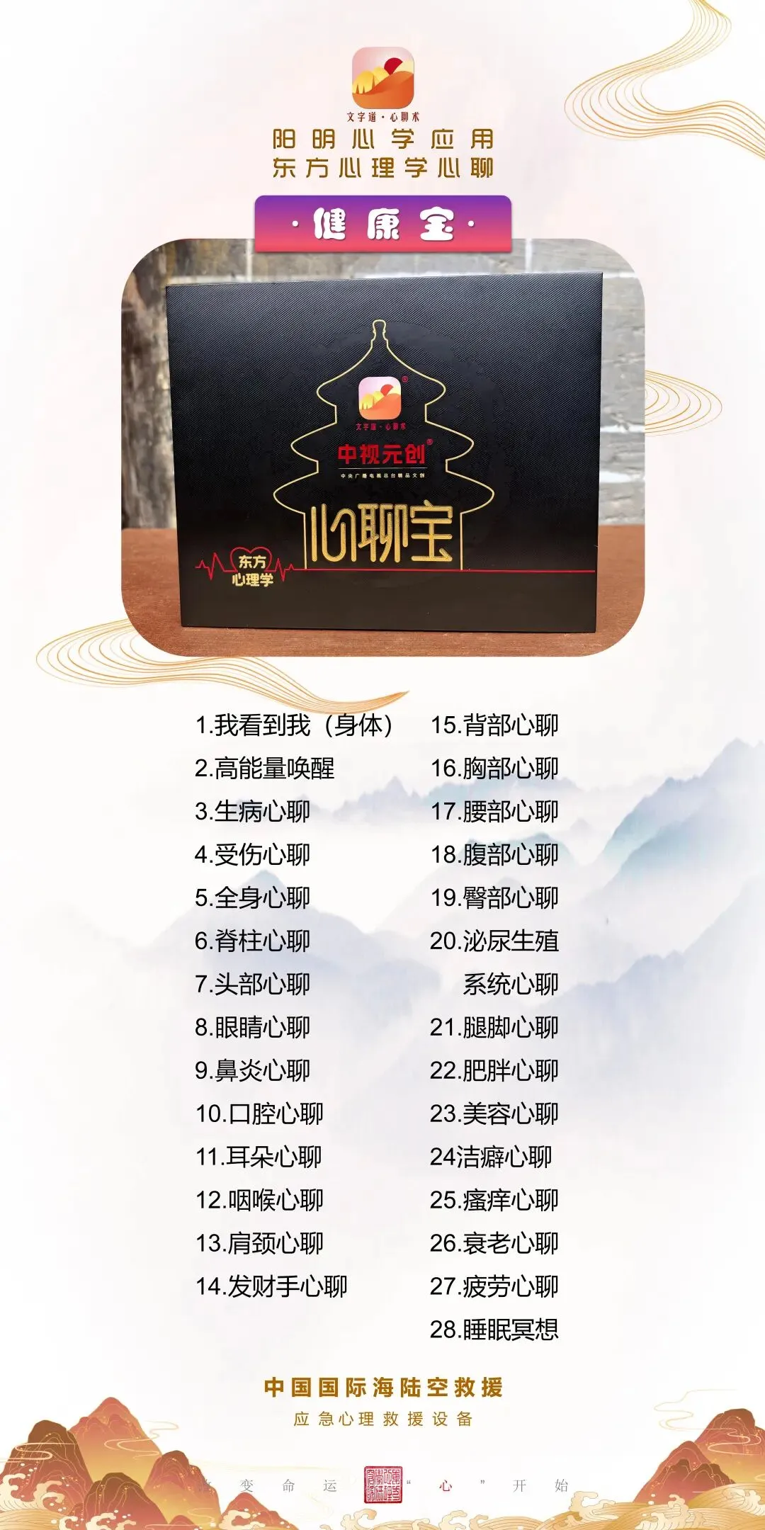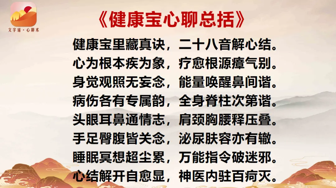 《黄帝内经》说:“上医医心”,“心病还须心药医”。哪里不舒服,就使用健康宝对应的音频疗愈,通过化解心结和心病,心聊实现不治病而健康!