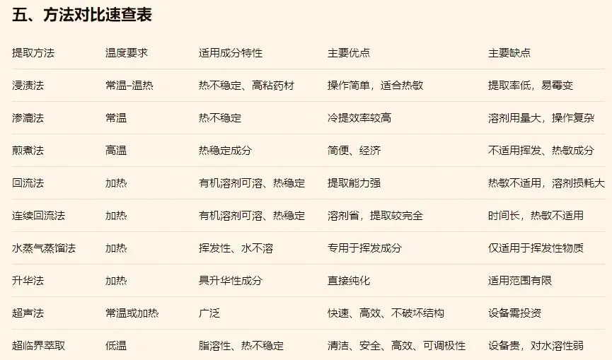 (1)要点:常温或温热(60–80℃)下,用溶剂浸泡药材,溶出成分。