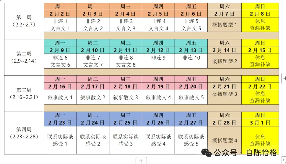 1.学习期间的每周日不安排直播课和学习任务,同学们可利用这段时间查漏补缺、充分休息。