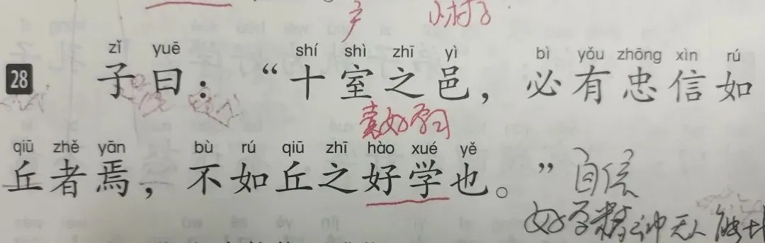 译文:孔子说:“就是在只有十户人家的小地方,一定有像我这样又忠心又守信的人,只是赶不上我这样好学罢了。”感悟:好学自信。本章,孔子以自身成就为例,强调了学习的重要性。