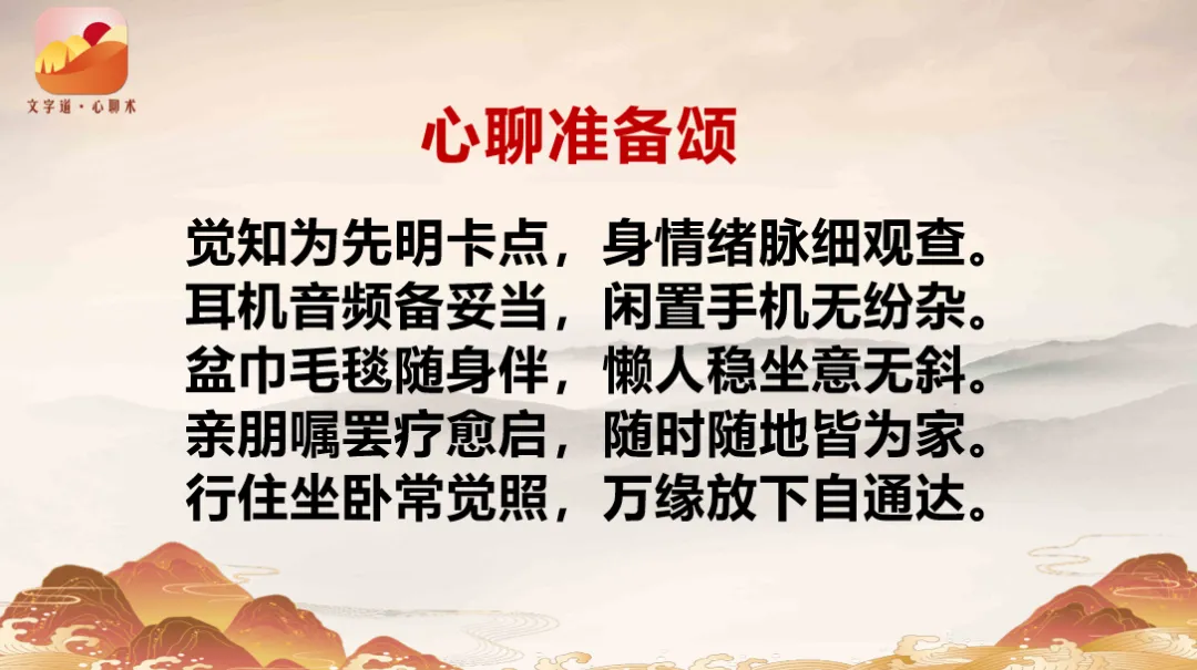 (2)愿力准备:包括愿力大于业力,即要有足够的意愿从杂染和痛苦中拔出;愿意当勇敢者面对心聊之痛,因为这是生命蜕变的必然过程;要真正开启疗愈,而不是只是尝试体验;要像 “上士闻道,勤而行之” 一样,听闻心聊之道后,勤奋地去践行,而不是半途而废或者嘲笑心聊。