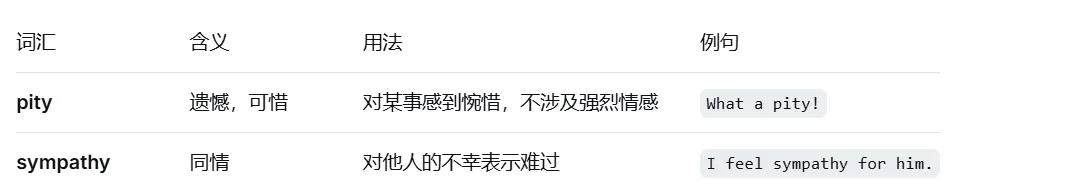 区分 pity(遗憾)和 sympathy(同情)。