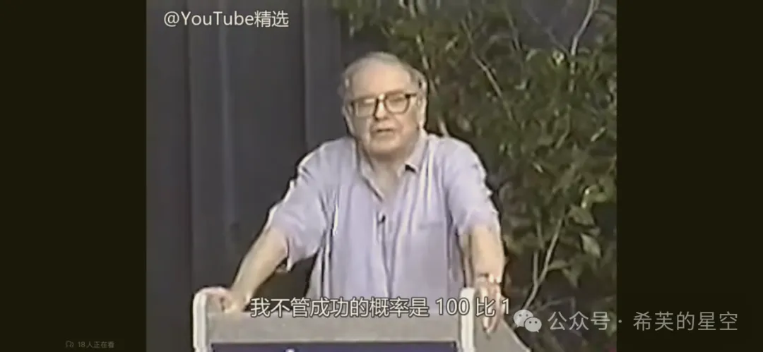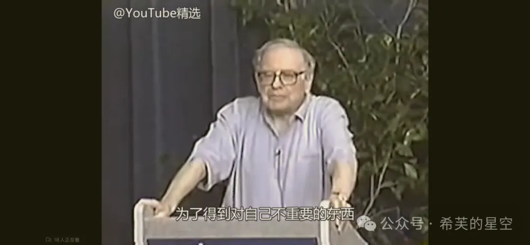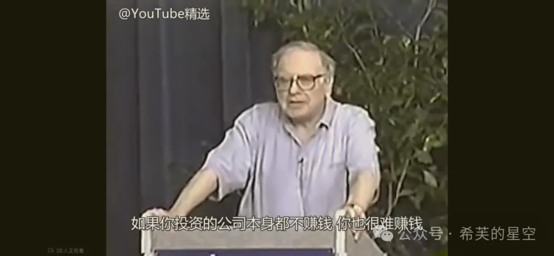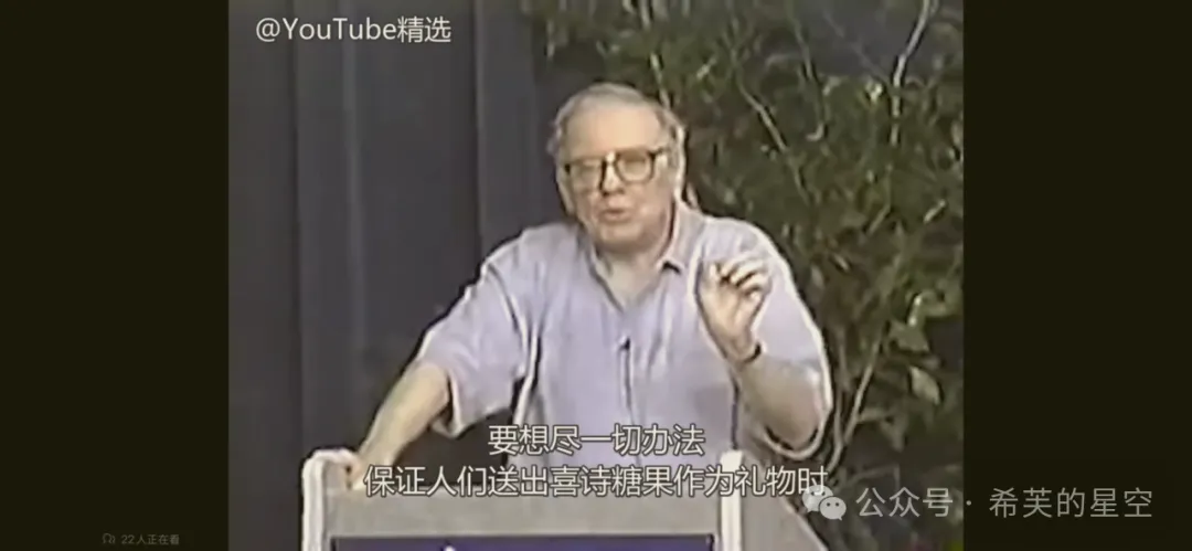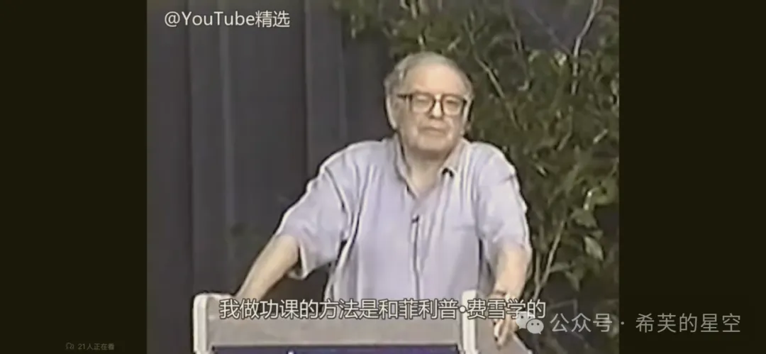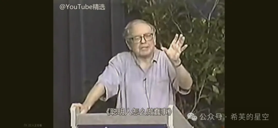 该视频是我目前为止见到的少有、且公开纯分享投资的内容(股东信除外)。用网络流行语来说就是巴菲特讲述的投资干货特别多,而且任何时候听都日久弥新。段永平先生曾在雪球上多次推荐该视频,他本人也表示这个视频他反复看了不下10遍。