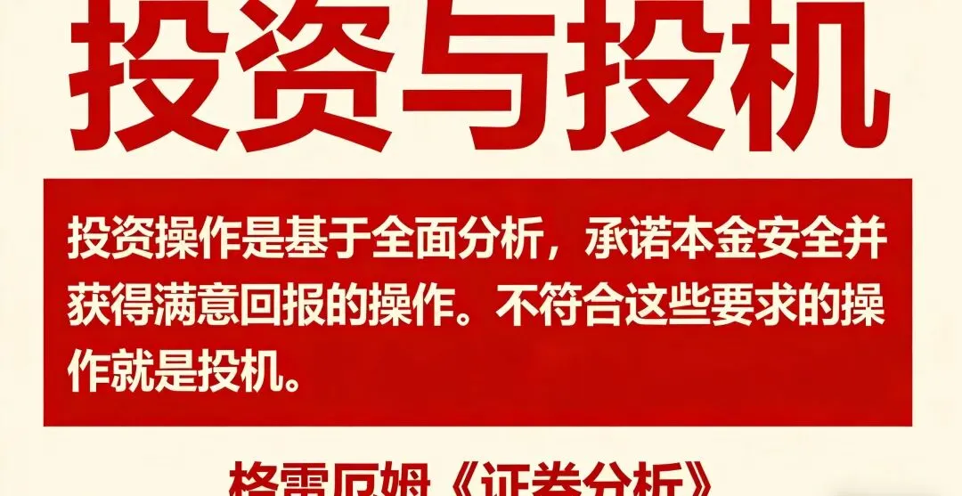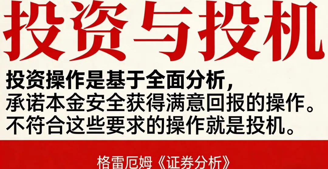 格雷厄姆在近一个世纪前就告诉我们:投资的核心,是基于全面分析,确保本金安全,并获取满意回报;而投机,是把股票当成筹码,靠猜涨跌、追消息,把市场当成赌场。