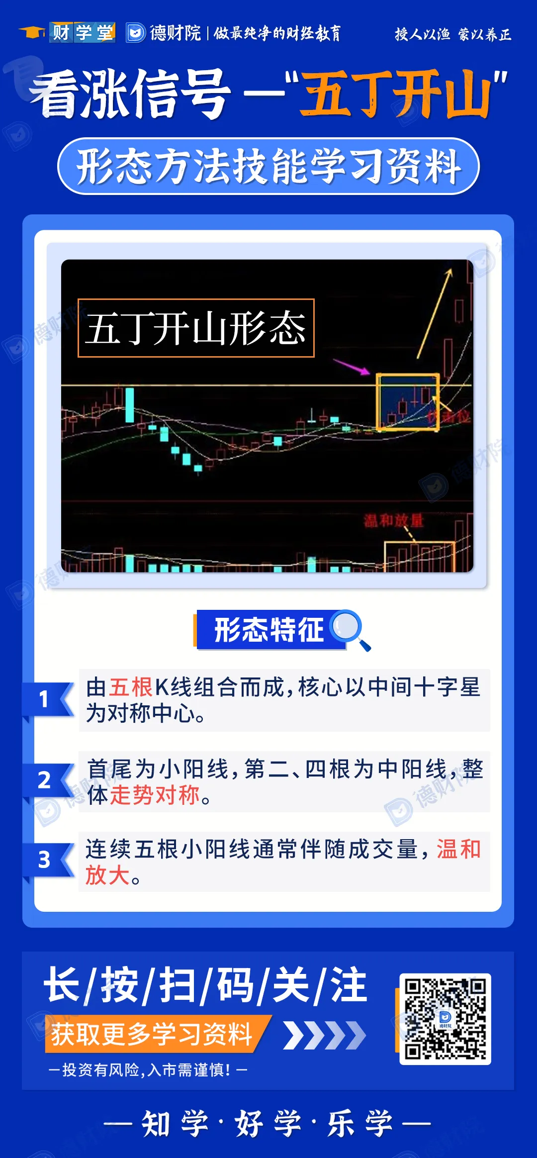 今天和大家分享一个经典的K线形态——“五丁开山”,常被视为一种积极的技术信号。