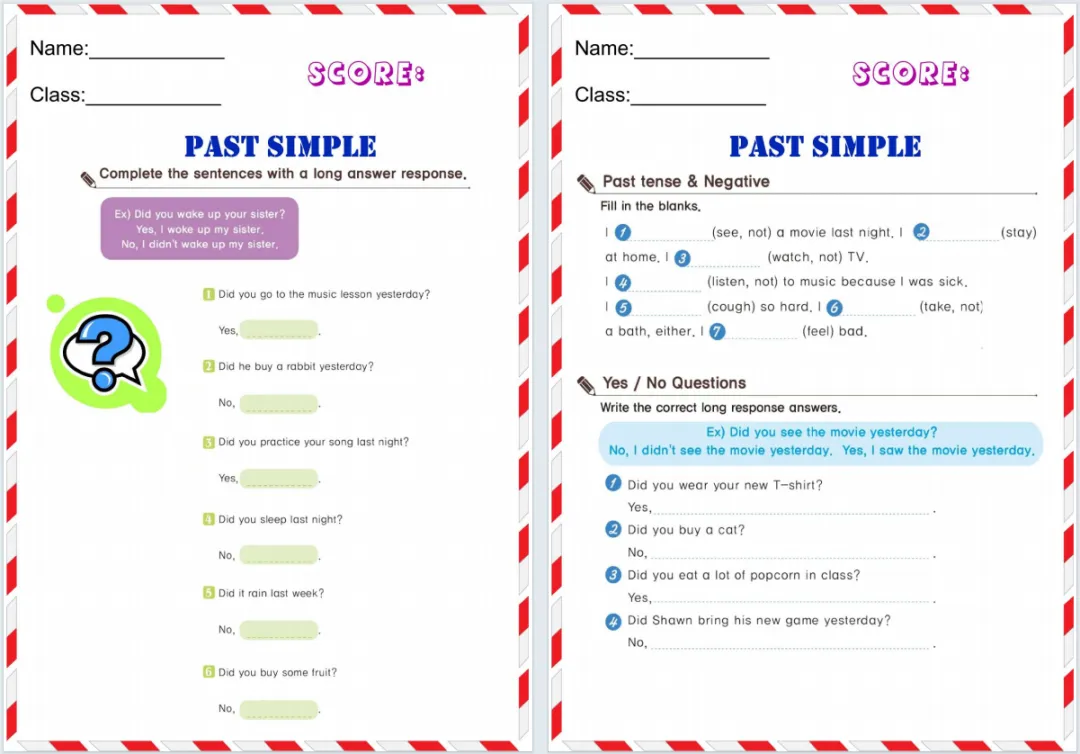 今天分享8套一般过去时练习纸+3套PPT,练习题包含一般过去时连词组句、综合练习、不规则动词变化、口语卡片、阅读理解。