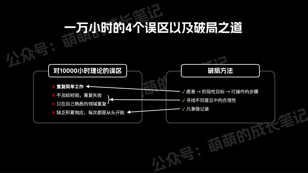针对误区四:凡事做记录。记录不仅是为了记住,更是在记录过程中加深思考,让每一次努力都能为下一次复用,形成可积累的经验体系。