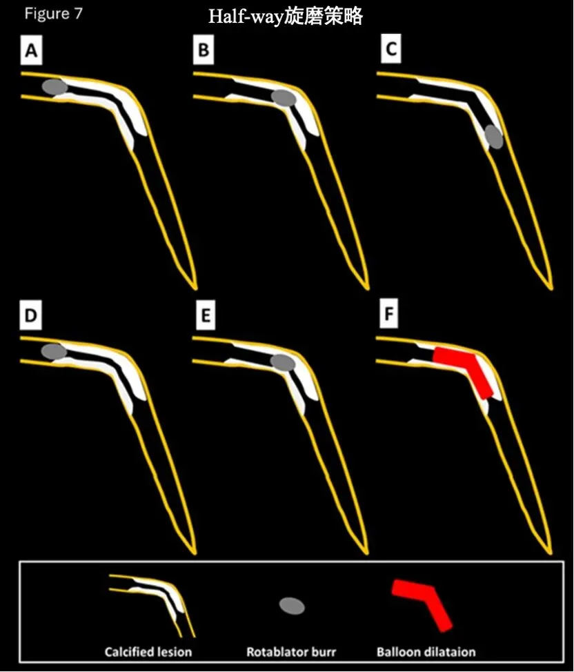 环形钙化: IVL能够产生更多的裂隙,效果好且安全性高,可以考虑作为首选。但IVL通过性差,可能需要先进行旋磨或轨道旋磨预处理,也就是所谓的 “Rotatripsy策略” 。